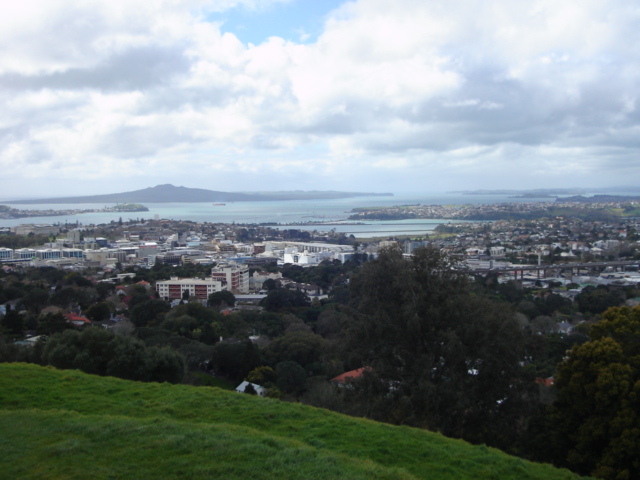 ここはオークランド市内にたくさんある死火山のひとつで小高い丘になっていて市内を見渡せます。