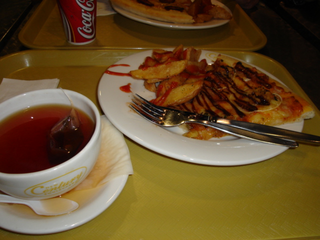 ピザとフライドポテトと紅茶。