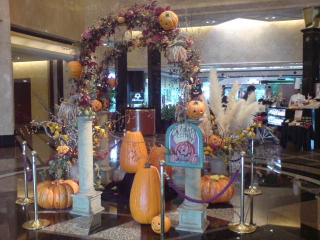 ホテル入口には、ハロウィンのディスプレイがありました。